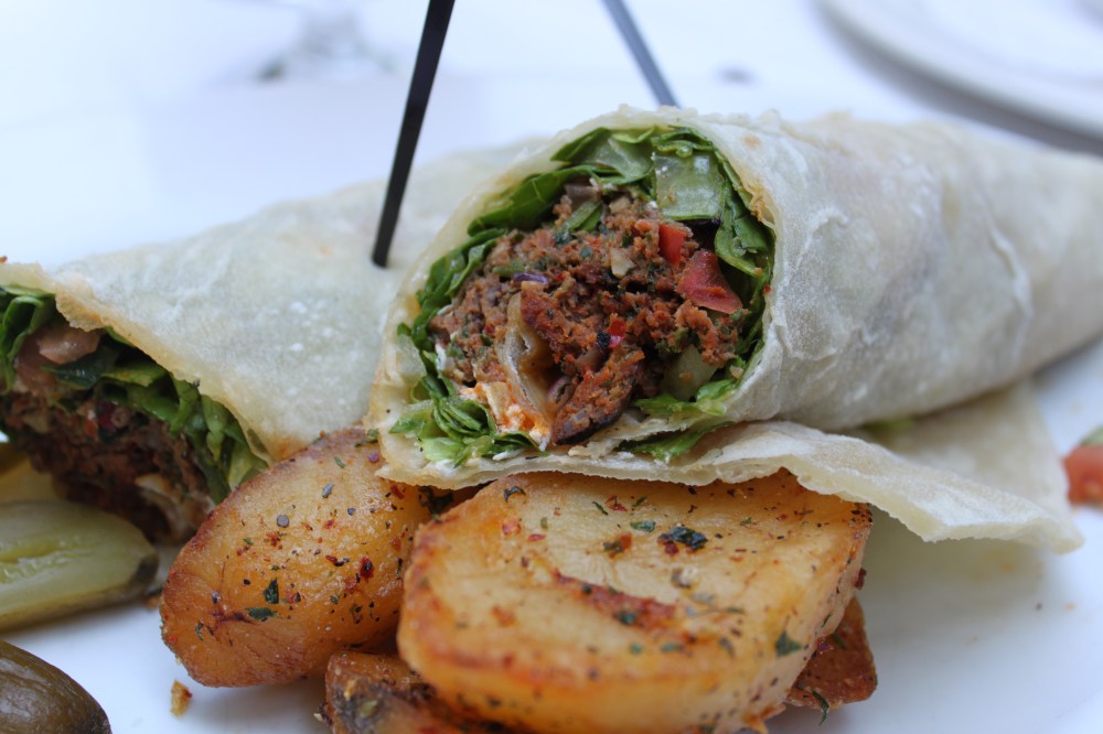 Kofte Kebap Sandwich: Grounded lamb, seasoned and grilled wrapped in flatbread, pickle yogurt sauce and crispy potatoes. Besides the Lahmacun, this was my favorite of the meal. Perfect spicy but not too spicy seasoning. The flatbread was fantastic. Not too thick and a bit spongy but in a good texture way. So good I brought home the leftovers. The yogurt sauce was an added bonus to an already great sandwich. Served with a few perfectly crispy potatoes and pickles that provided almost a palate cleanser to the lamb.