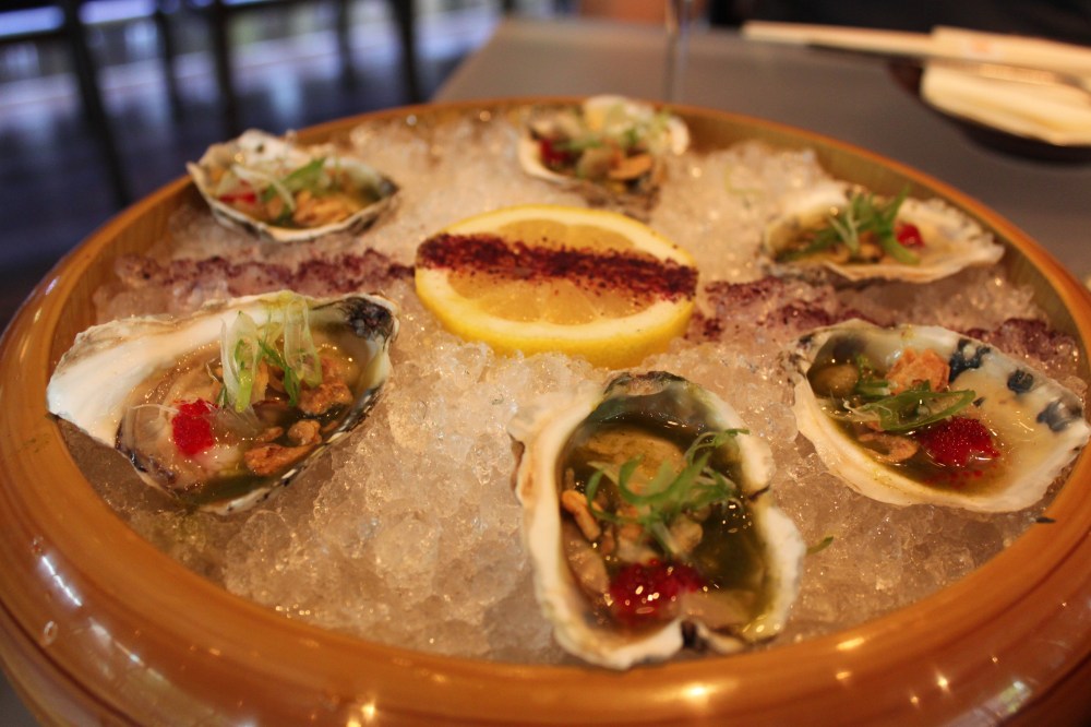 Next: OYSTERS ON THE HALF SHELL | (6) red tobiko, green onion, crispy shallot + jalapeno-cilantro ponzu. I’m not a huge oyster eater but the flavor combination was great. The green onion with the texture of the crispy shallot was really good. Bold but in a delicate way…if that makes any sense. These were ordered again on the second visit.