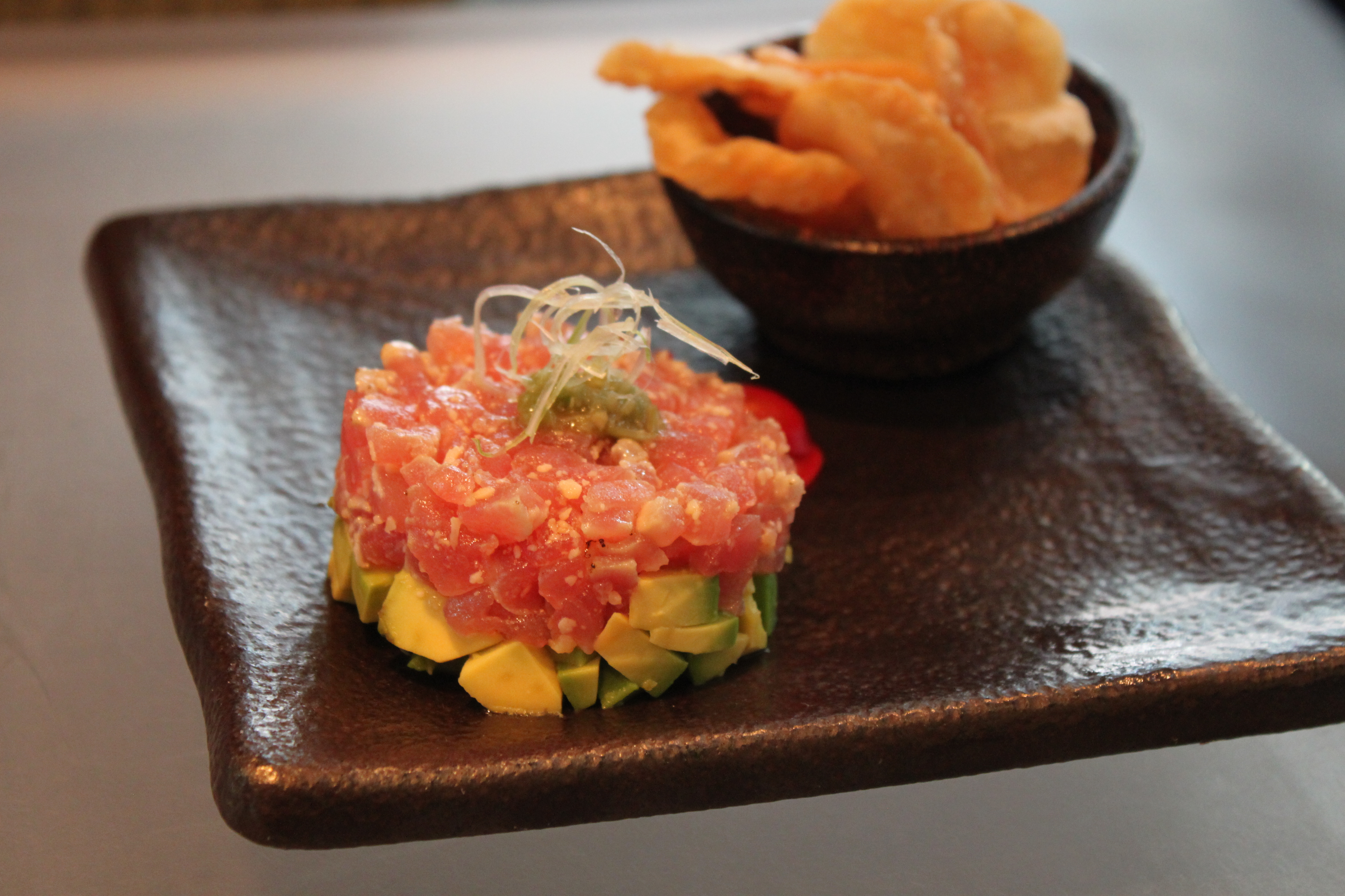 Having the BBQ part out-of-the-way I moved on to the sushi/seafood. First up was the truffled tuna with truffle oil, avocado, parmesan, chile fresco + wonton chips. For some reason I couldn’t initially taste the truffle oil but once I did it made the dish worth ordering.