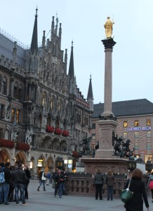 First stop was Marienplatz to walk around and get some coffee. Stopped at an Italian cafe that served up great cappuccino. I was too jet lagged to remember to take a picture; you’ll just have to trust me on it. The first thing I noticed about the squares around Munich is that everything looks perfect. Every building is beautiful, in order and no trash. It looked like a movie set to me.