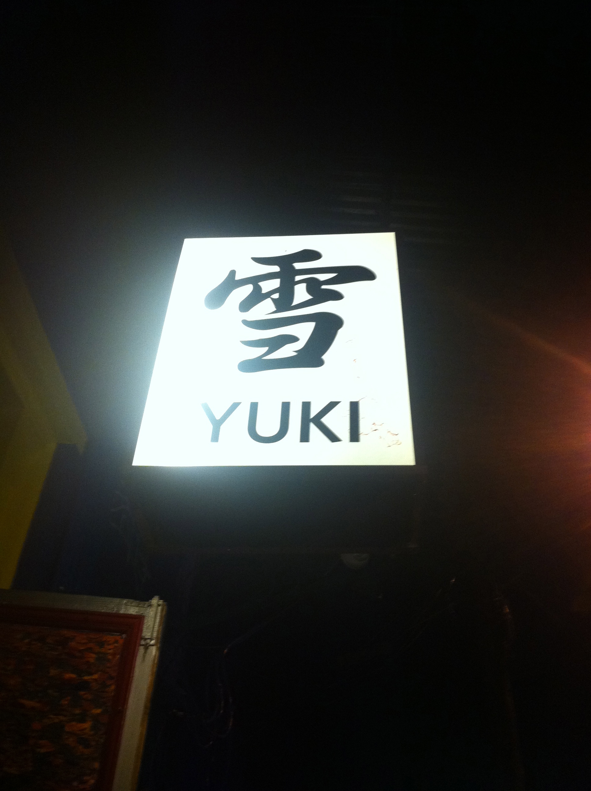 You could describe Yuki Izakaya as a dive bar I suppose. It’s got all the good characteristics of dive bar (immediate comfort, strong drinks, cool crowd, kitschy decor, dark, atmosphere of being content where you are) without the bad (dirty, greasy and beyond scary smells — although the bathrooms here need to be brighter). Technically an Izakaya is a Japanese pub that is a casual, after work type place that also serves small plates.