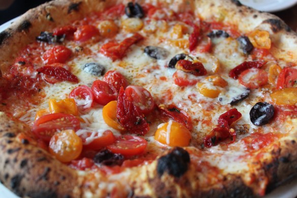 We started with the Insalata Mista that was a nice mix of mesculin greens, Castelvetrano olives and cherry tomatoes with a light dressing. The olives were fresh and I was fighting the urge to ask for more. The salad was served with bread that my dining companions said was really good (I was saving my appetite for pizza).