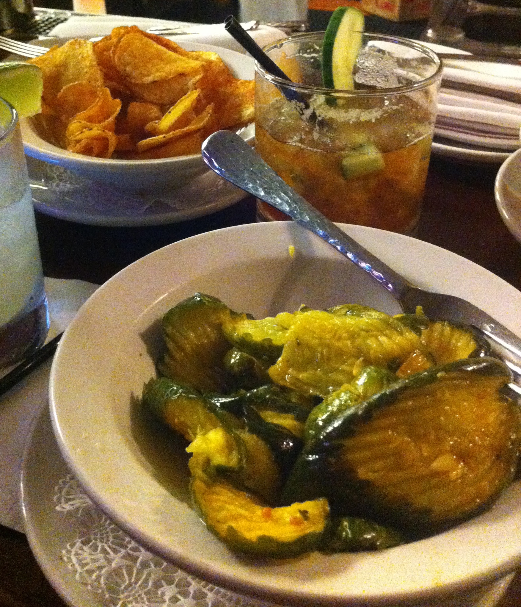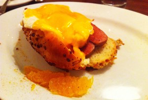 This review is long over due with my first visit in May 2011. I went back earlier this year and just last weekend for brunch. One my second visit I was waiting for the rest of the party to arrive so went to the bar and was served an 88 Pimm’s that was delicious. In addition to the drink the bartender sporting a gingham shirt also served up butter pickles and house made chips. I asked how the butter pickles were made but they were keeping that a secret. If I left only eating the pickles and chips I would have been happy.