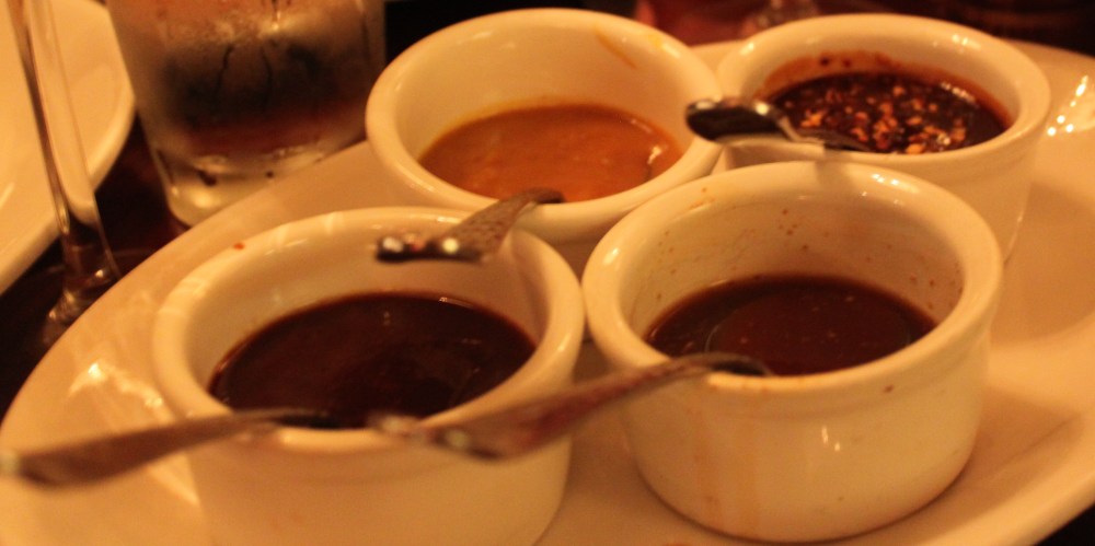 The pulled pork was juicy, full of flavor and very tender. Next decision to make was which of the house-made sauces to use: original mild, spicy, Eastern North Carolina vinegar and South Carolina Mustard Sauce. All of the sauces were tasty with my favorites being the spicy and Eastern North Carolina.