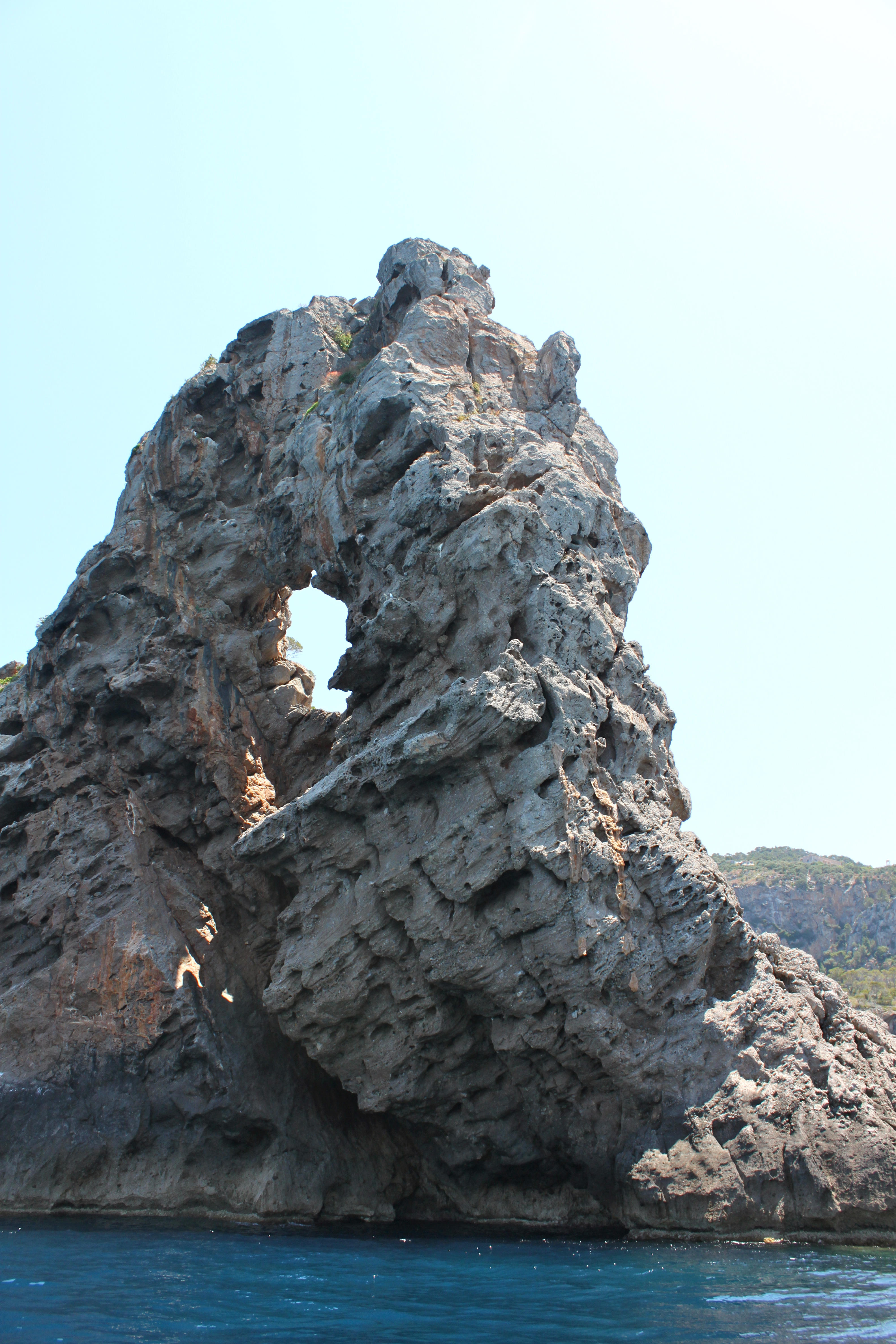 With all the beer, water and snacks loaded up we set sail for Sa Foradada. Calm, shimmering water and grand cliff formation after formation provided a memorable 90-minute boat ride to the cove.