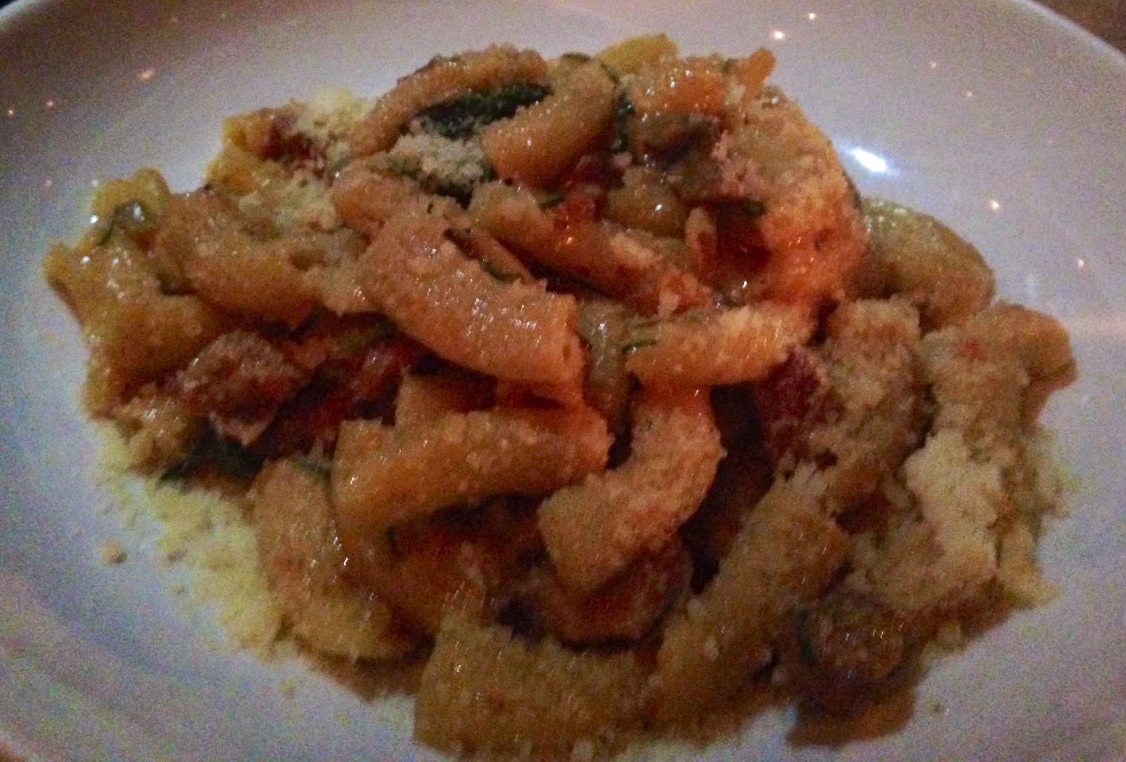 Our server Garren provided excellent service, always there when we needed her but never hovering. With only two people we could not order everything we wanted so she helped us narrow it down. She suggested a wine to accompany the lamb pappardelle and I. Fell.In.Love. I enjoy wine but I rarely “love” it and so when I mentioned it to Garren she wrote the name down for me. She also told me about an app called Delectable that tells you where you can buy the wine. All you have to do is take a picture of the label and they will let you know where you can buy it. My new love is a fruit forward Fratelli Revello Barbera d’Alba 2012 and available online.