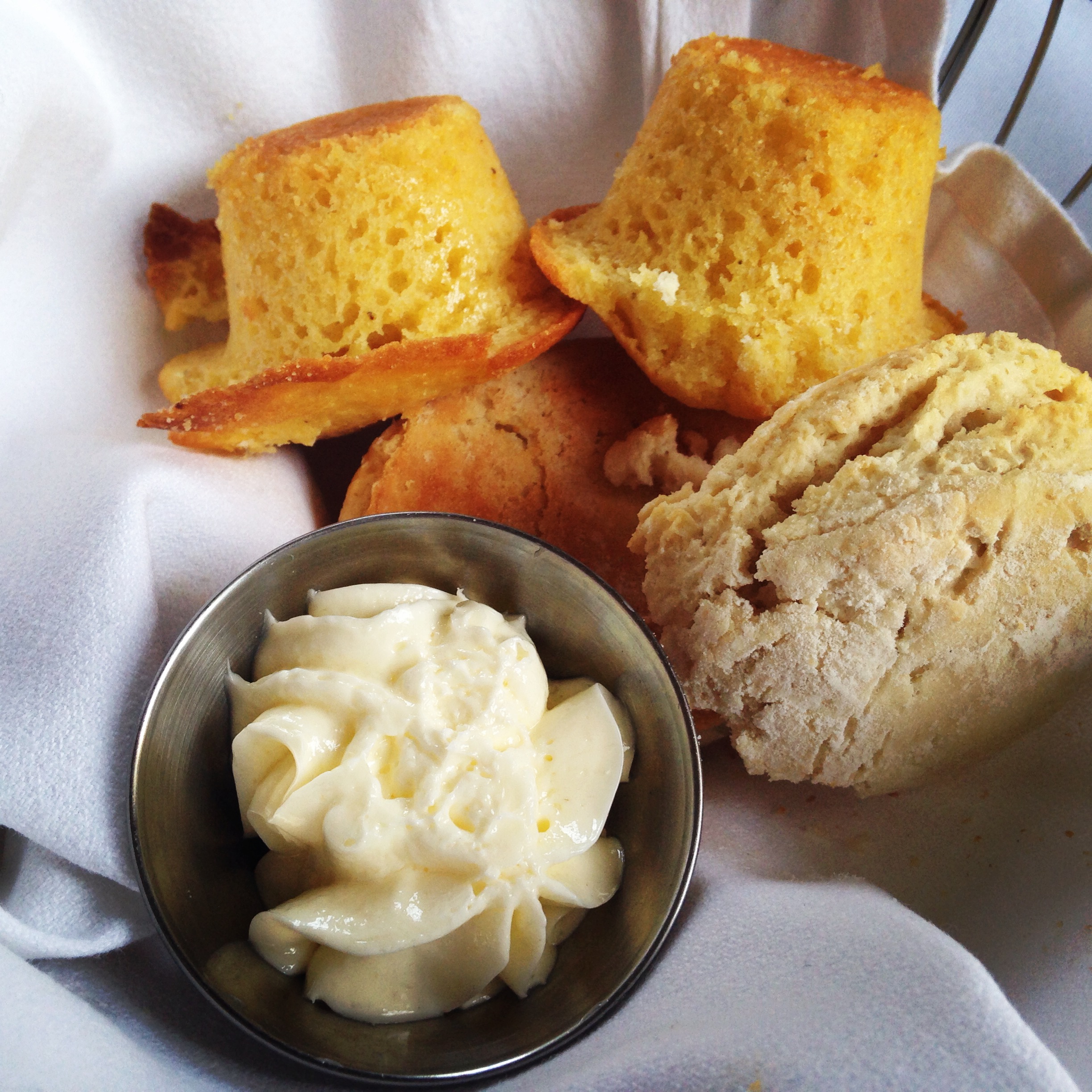 The menu is quite large and full of quintessential Southern food, corn bread, biscuits, grits, fried this, fried that, y’all! The corn bread and biscuits come with the table and are made from scratch.