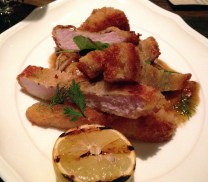 The pork schnitzel served with German potato salad, dill sauce and charred lemon was received well. I asked if there was any difference and they noted that schnitzel in Germany is served thinner but they liked the “Chicago take.” The grilled chicken paprikash is a generous portion with an interesting mix of flavors and textures with pickeled sweet peppers, braised kale and Czhech potato dumplings.