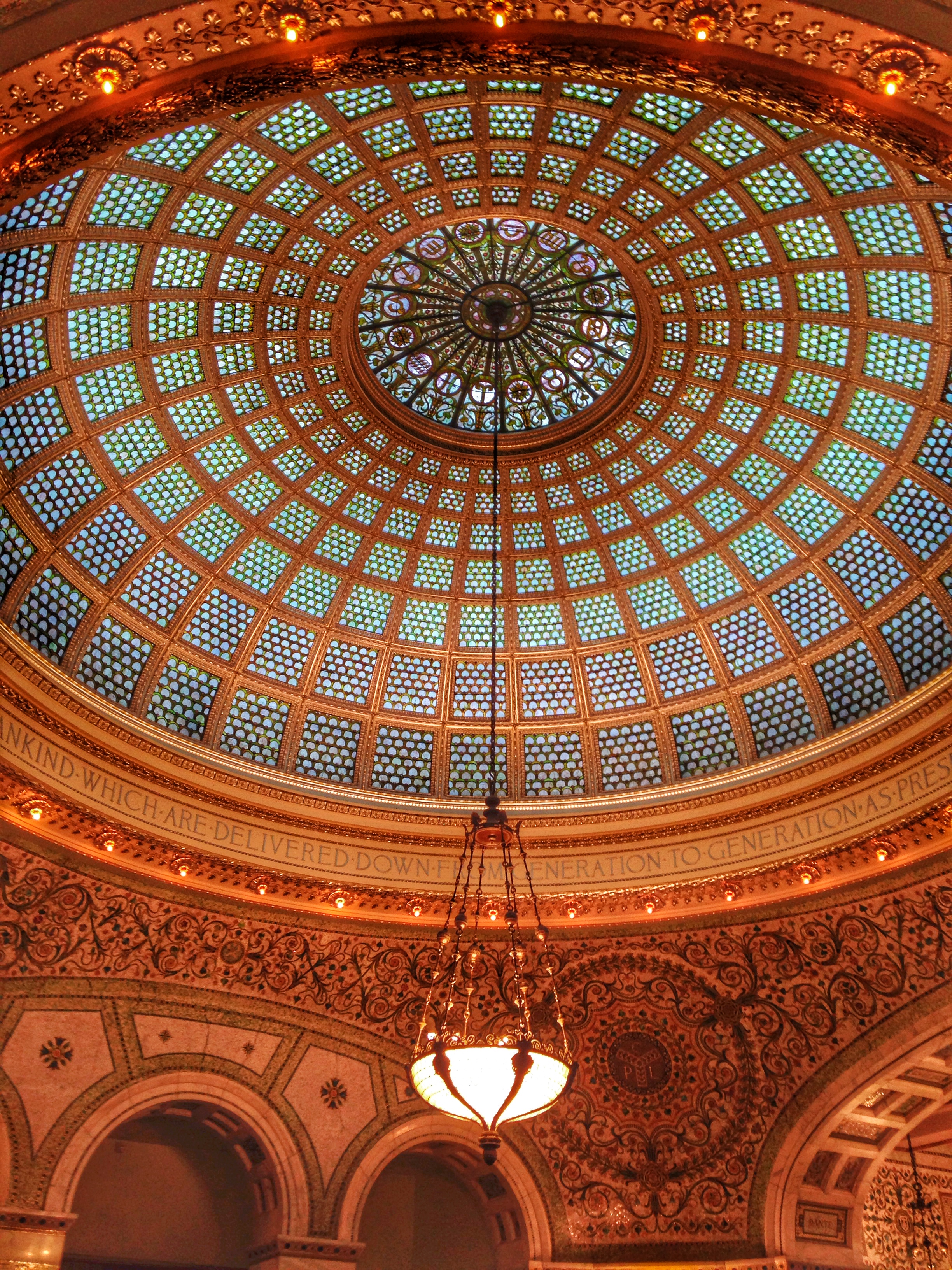 30,000 pieces of glass make up the 38 feet Tiffany Dome in the Chicago Cultural Center. If you look really hard you can see your zodiac sign at the very top.