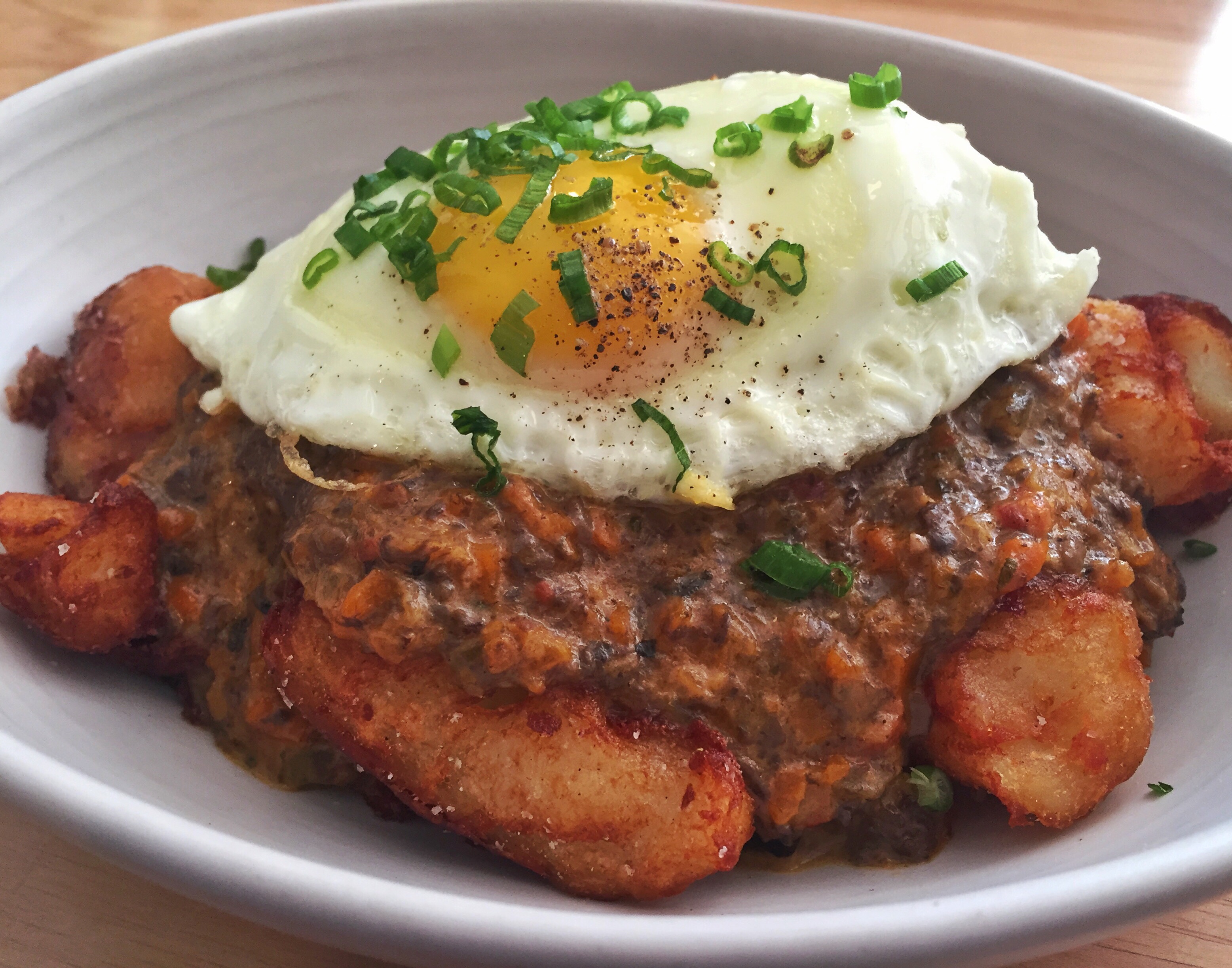 Posted on November 3, 2015November 2, 2015 by Alicia Poutine is usually served with cheese curds, french fries and some sort of meat gravy but this is the flavor-packed vegetable poutine from The Winchester. Rich mushroom Bolognese, flash-fried potatoes, a sunny egg topped with scallions. Share this: Click to share on Pinterest (Opens in new window) Pinterest Click to share on Tumblr (Opens in new window) Tumblr Click to share on X (Opens in new window) X Click to share on Facebook (Opens in new window) Facebook Click to email a link to a friend (Opens in new window) Email Like Loading... Related
